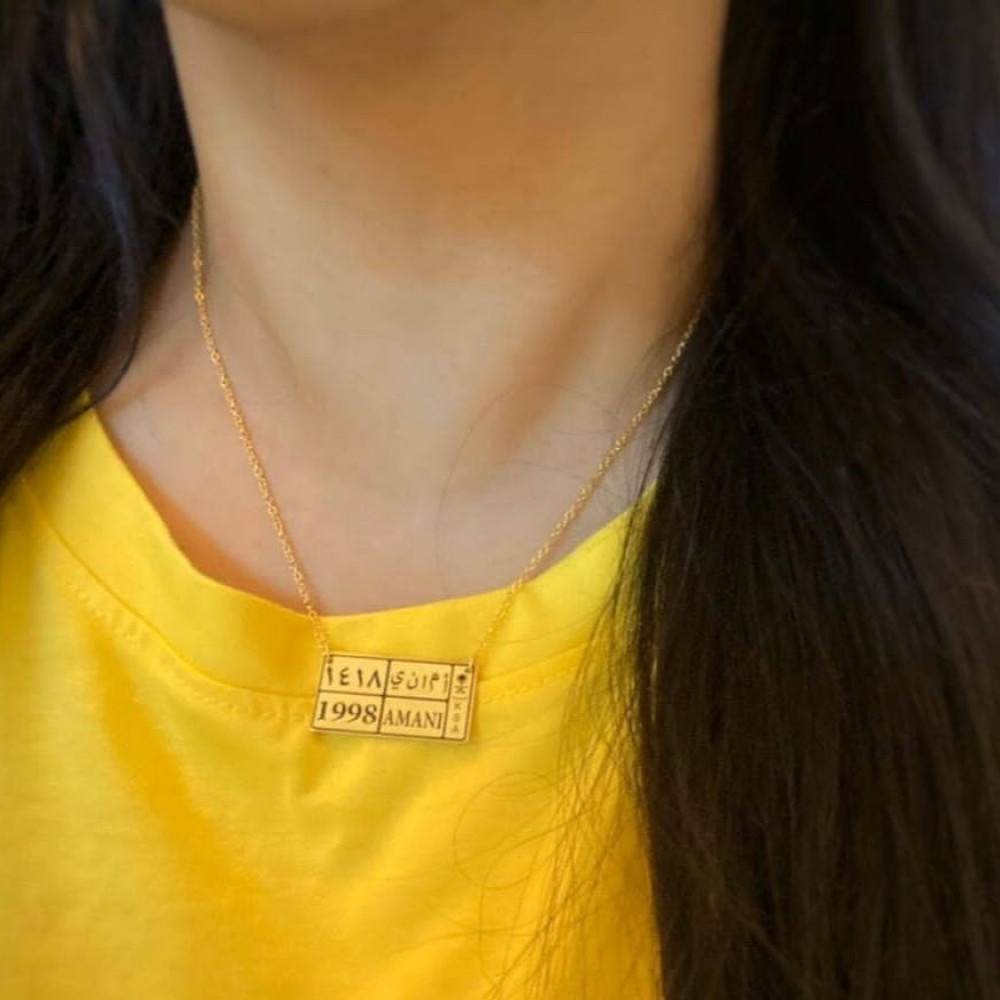 صمّم سلسالك الخاص بلوحة أنيقة تضم الحروف والتاريخ المميز في حياتك. تصميم شخصي فاخر يجمع بين الذوق والمعنى