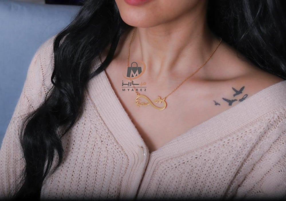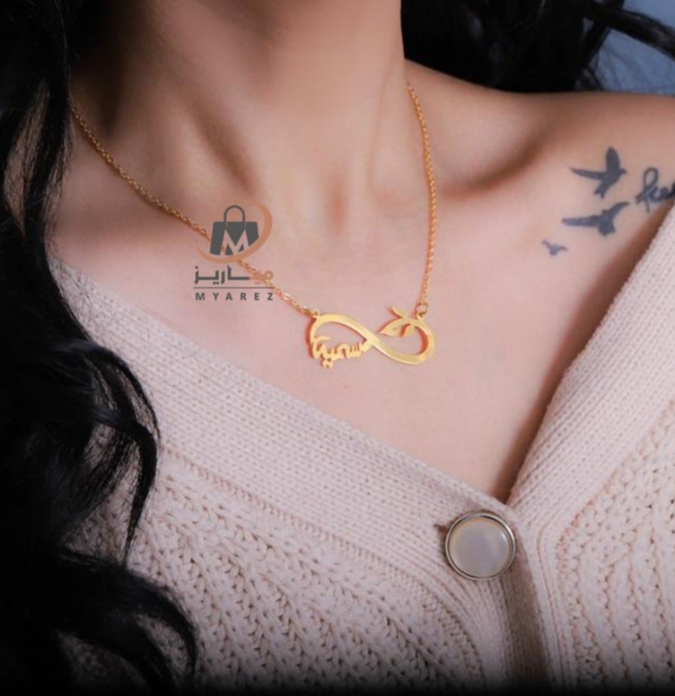 تميزي بإطلالة أنيقة مع هذا السلسال الفريد بتصميم إنفنتي المخصص. احفري اسمين يعكسان حبك أو صداقتك وامنحيه كهدية ذات معنى يدوم.