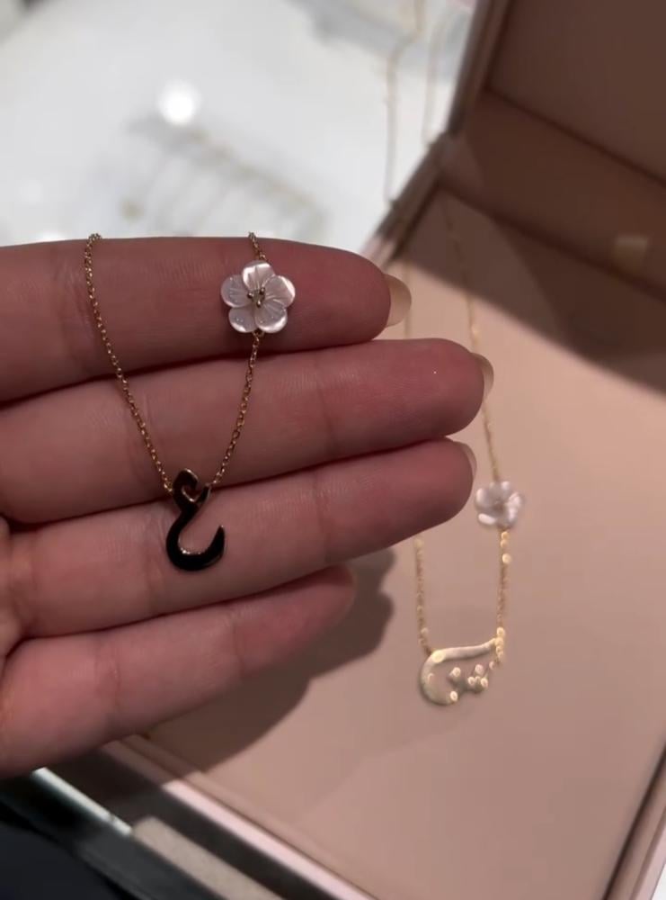 سلسال الحرف فخم مع ورده صدف الزركون الفاخرتصميم بالاسم او الحرف حسب الطلبمتوفر لونين ذهبي وفضيمطلي ذهب عيار 21ضمان الون من مياريزيأتي بعلبة فاخرة وكيس مياريز
