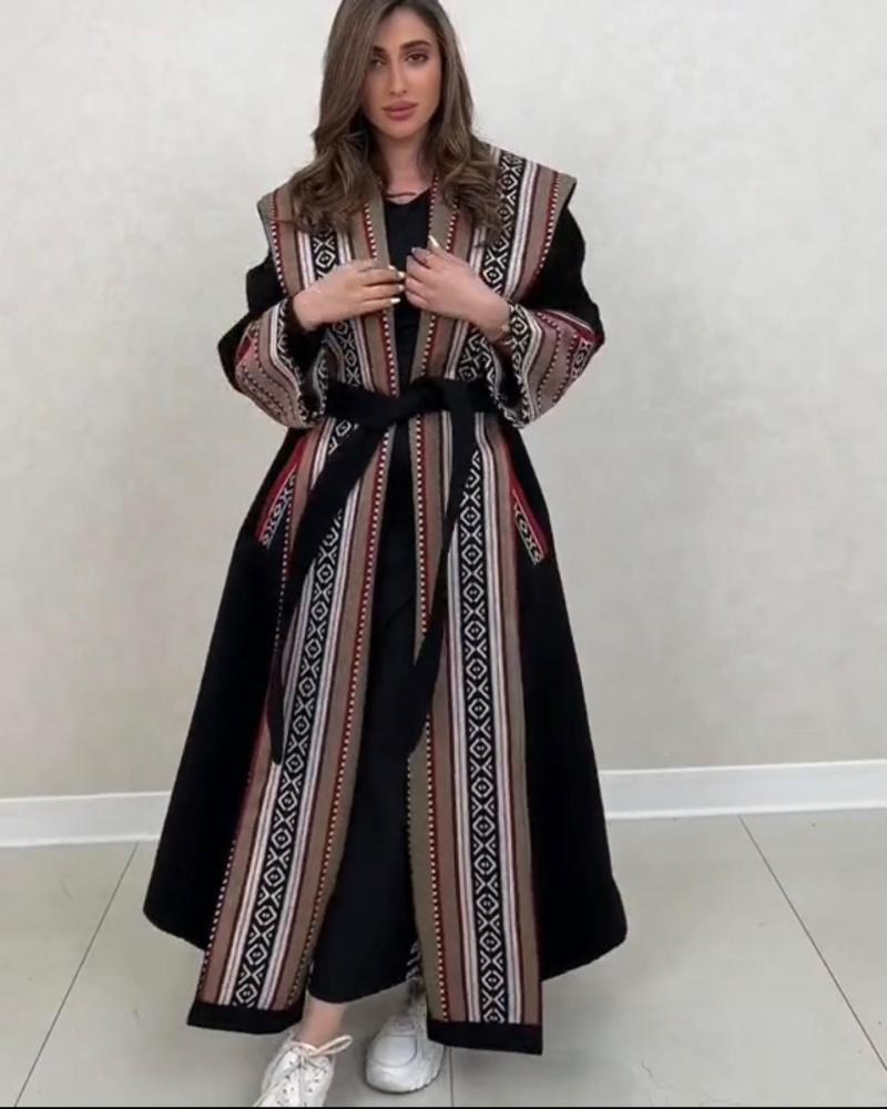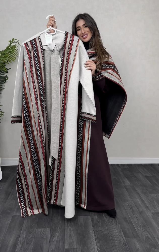 استمتعي بالدفء والأناقة في هذا البشت الشتوي المصنوع من جوخ عالي الجودة، والمطرز بنقوش السدو التراثية التي تعكس الفخامة العربية. يأتي مع شال أنيق ليمنحك دفئًا مضاعفًا وأناقة متكاملة خلال الأيام الباردة.