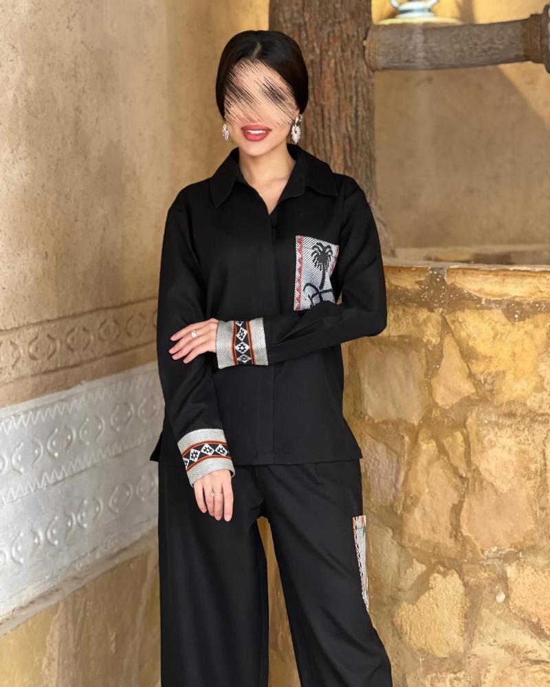 طقم نسائي يوم التأسيس قميص و بنطلون
