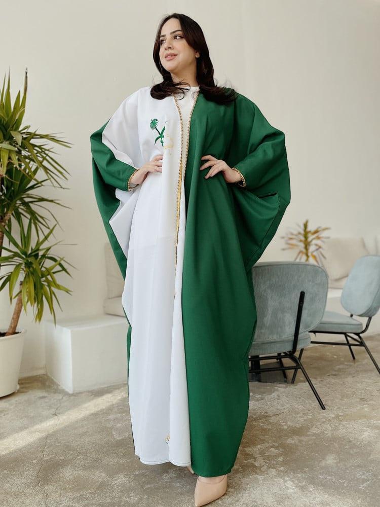 اجعل حضورك لافتًا في اليوم الوطني مع بشت فاخر مُطرز باسمك وشعار السيفين والنخلة تصميم أنيق وتفاصيل مستوحاة من الفخر الوطني.