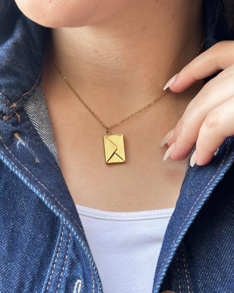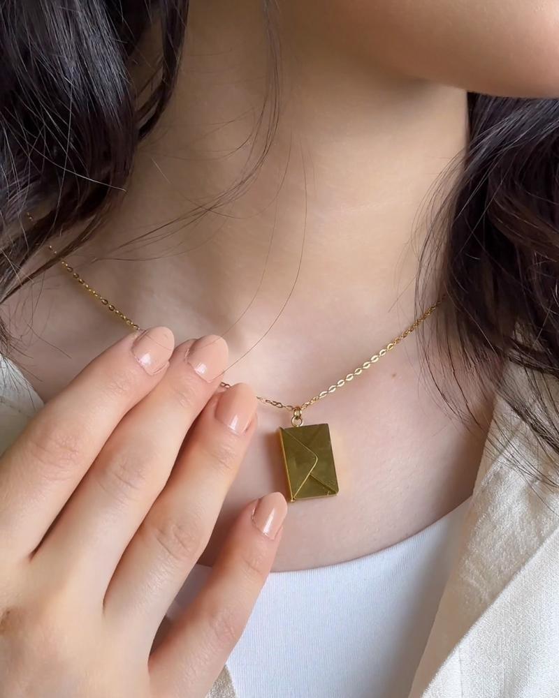 اهدي من تحب قطعه مميزه سلسال الظرف انيق و جميل ويحمل الاسم او العباره حسب الطلب مناسب لكِ أو كهدية رائعة يكتب عليها من داخل القلادة مطلي ذهب وفضة