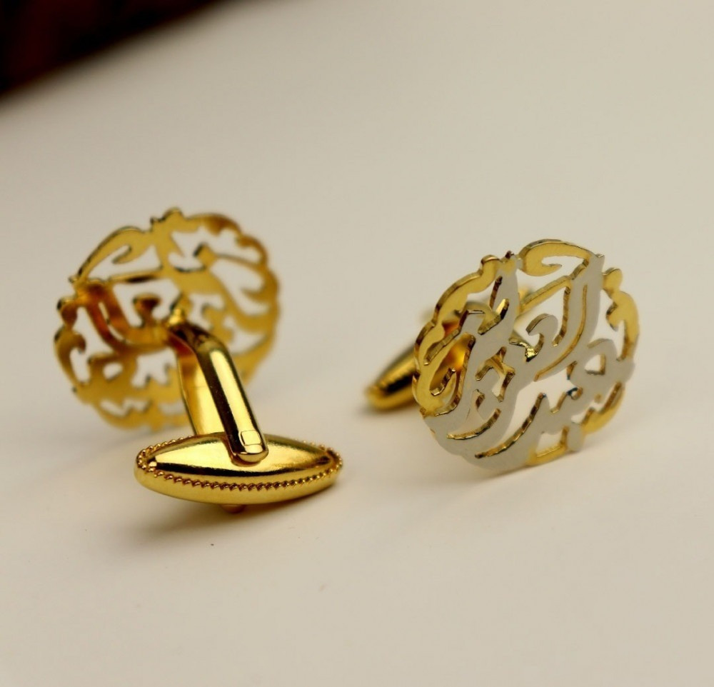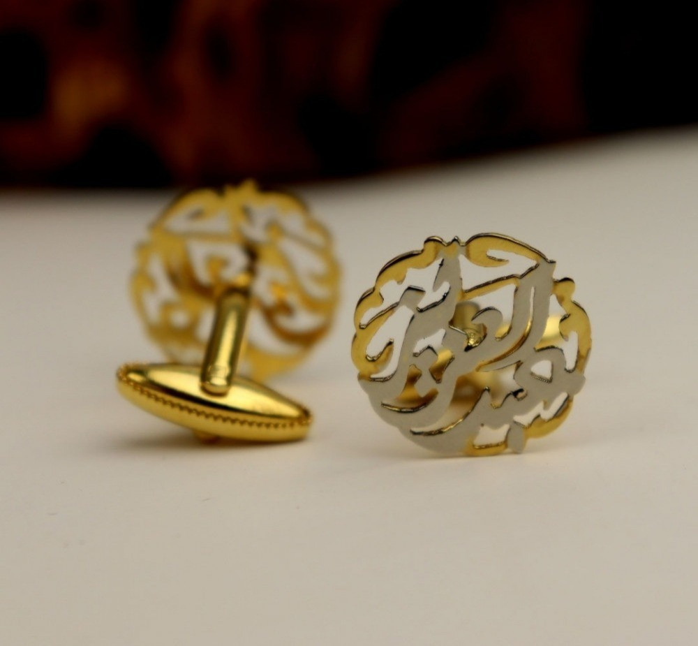 تألّق بتفاصيلك الخاصة مع كبك رجالي مزدوج الألوان بلمسة فاخرة. تصميم أنيق يجمع بين الفضة والذهب، مع إمكانية حفر الاسم لإطلالة استثنائية وهديّة راقية لمن تحب.