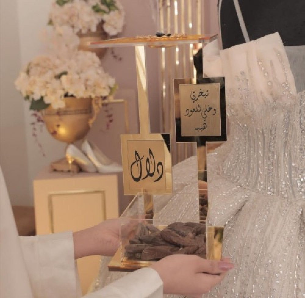 يتم وضع الاسم و الحرف المطلوب من الأكريليك الذهبي وحفر اليزر