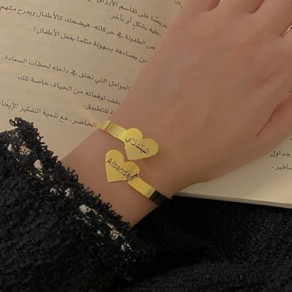 معلومات المنتج:يمكنك تخصيص أي اسم أو كلمة (عربي أو إنجليزي).متوفر ذهبي أو فضي.طريقة بسيطة لمعرفة المقاس .ضمان على اللون.تأتي داخل علبة هدايا بسيطة وكيس.
