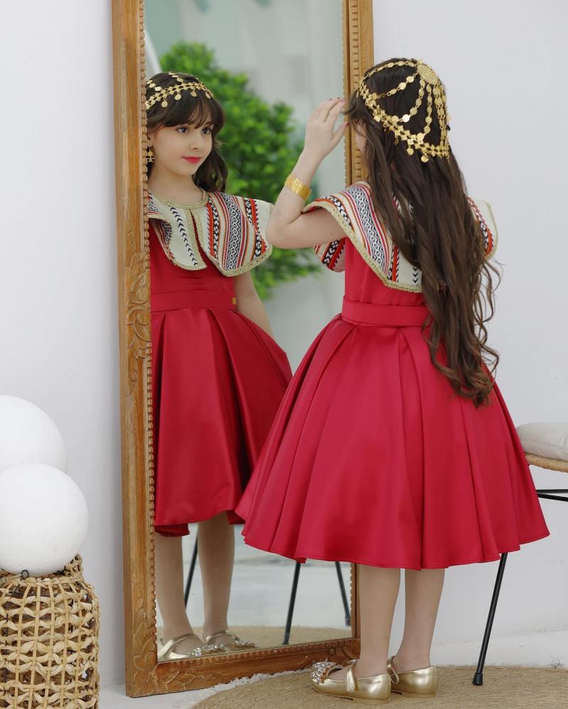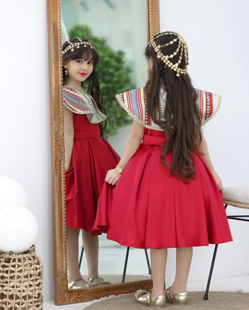 فستان يوم التأسيس هو حلة تجمع بين عبق التاريخ السعودي وسحر الطفولة، مصمم بعناية للفتيات الصغيرات ليلبسنه في يوم الاحتفال الوطني. يتألق الفستان بتفاصيل رمزية وألوان تعبر عن الرقي والعراقة.