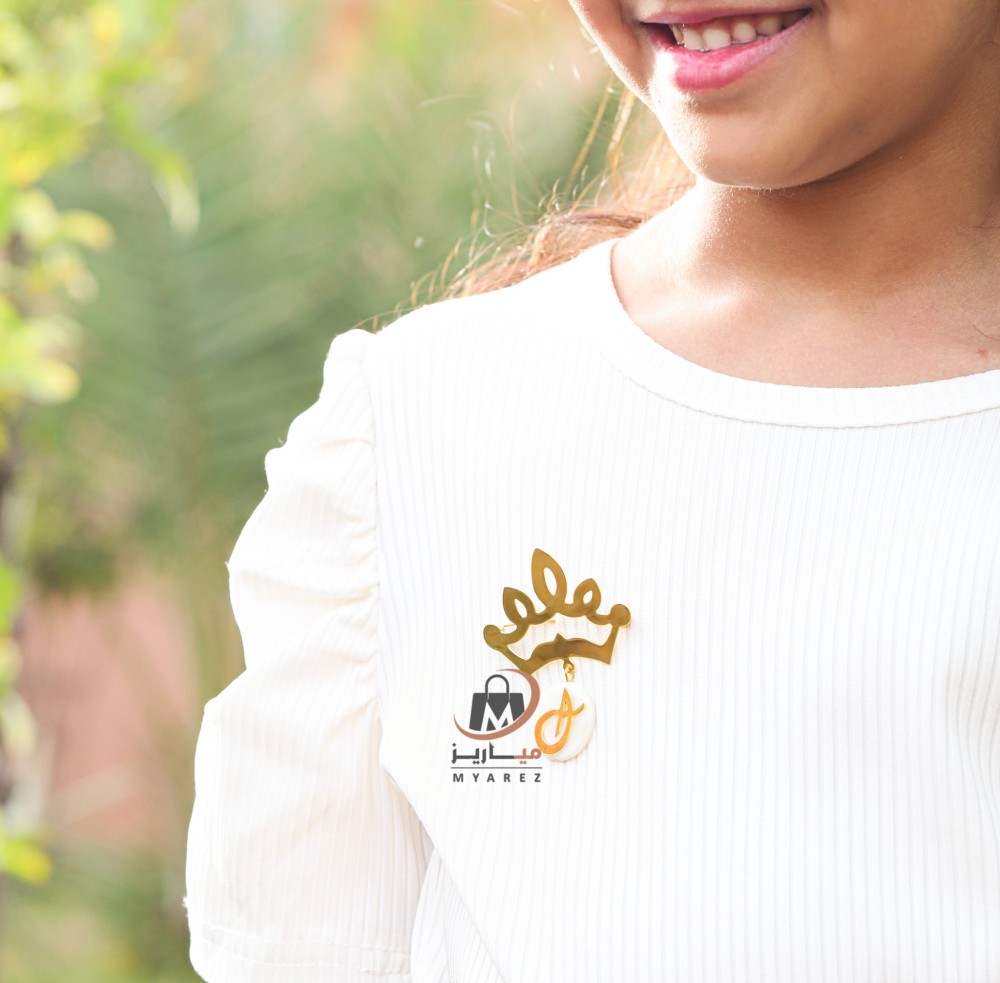 بروش مميز بإضافة لمسة أنيقة تاج وأسم أو حرف طفلك بكل حبتفاصيل المنتج:امكانيه كتابه الاسم حسب الطلبمطلي ذهب عيار 21 قيراطمتوفر بلونيناللون الفضياللون الذهبي