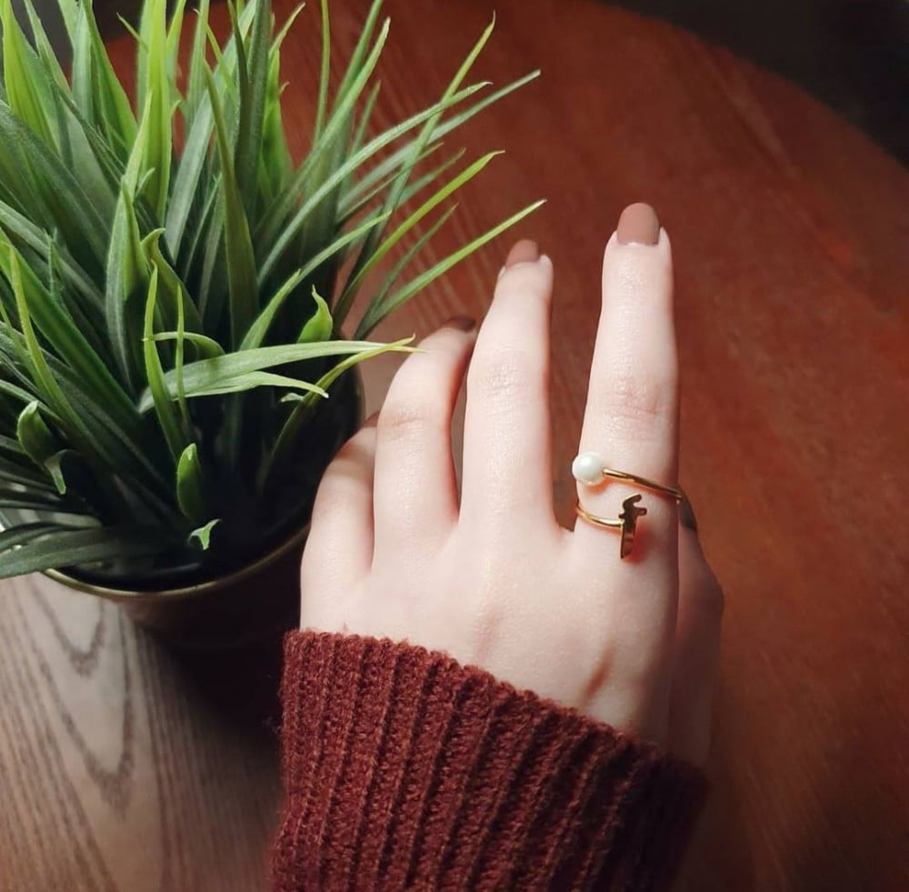 أضيفي لمسة من الفخامة اليومية مع هذا الخاتم المصمم بحرف مخصص ولؤلؤة طبيعية جذابة. خيار مثالي لكل من تبحث عن قطعة أنيقة ومميزة تصنع الفرق.