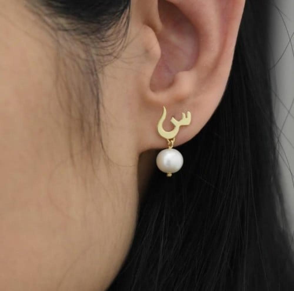 تميزي بإطلالة فريدة مع أقراط أذن مصممة حسب الاسم، مزينة بلؤلؤ أنيقة تضفي لمعة جذابة. الخيار الأمثل لهدية شخصية أو إكسسوار يومي راقٍ.
