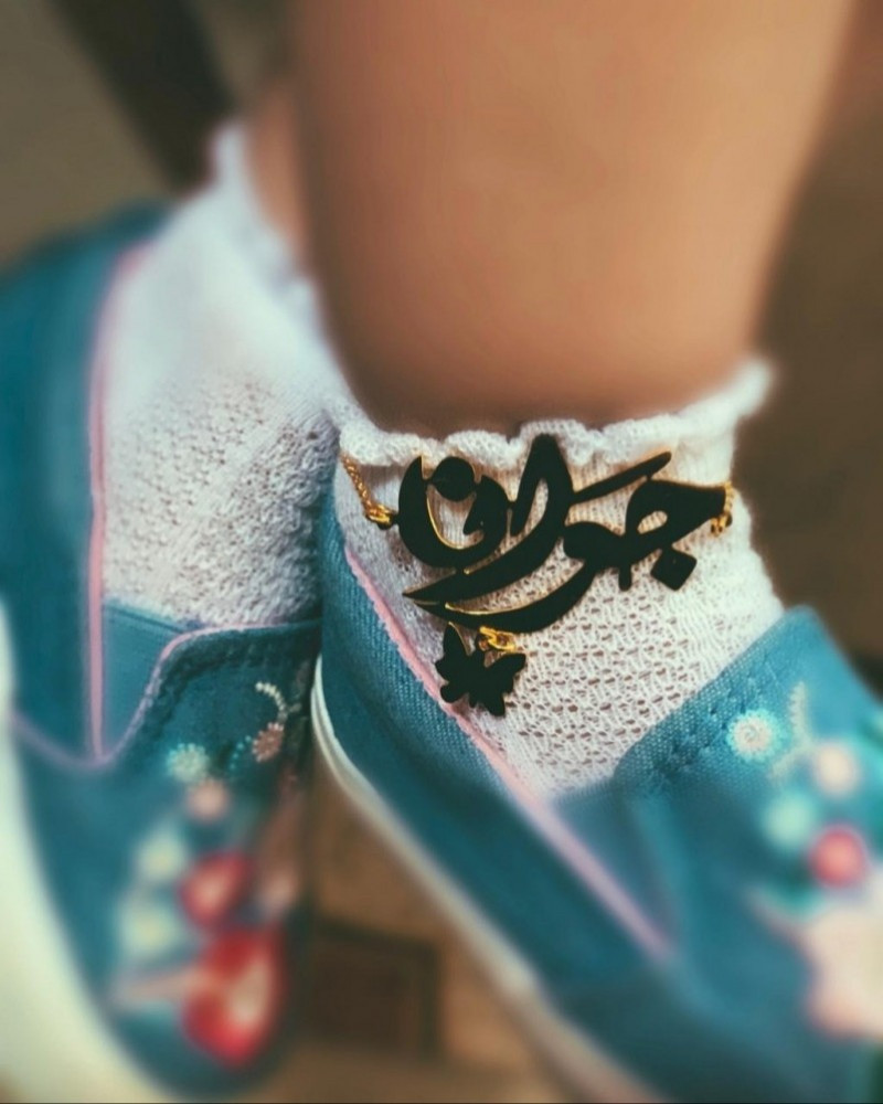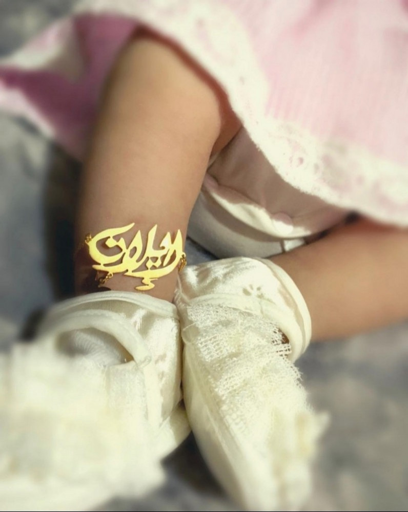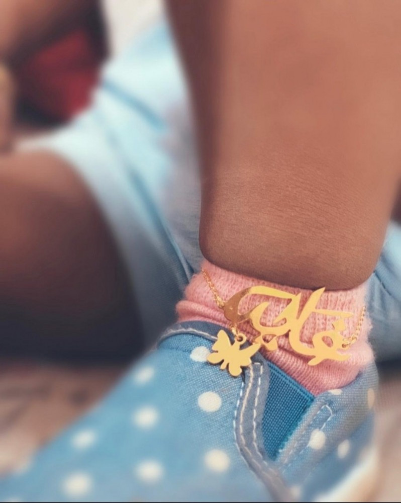 خلخال اطفال بالاسم بتصميم أنيق ومميزتفاصيل المنتج:امكانيه كتابه الاسم حسب الطلب.متوفر باللونين ذهبي او فضي.طلاء ذهب عيار 21 قيراط.ياتيكم بتغليف شيك وجميل.