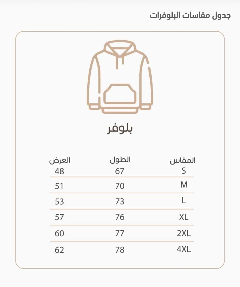 ملاحظة: يشمل المنتج قطعة هودي واحدة فقط. لطلب قطعتين بمقاسات أو تفاصيل مختلفة، يُرجى إضافة المنتج إلى السلة مرتين وتحديد التفاصيل لكل قطعة من السلة.
