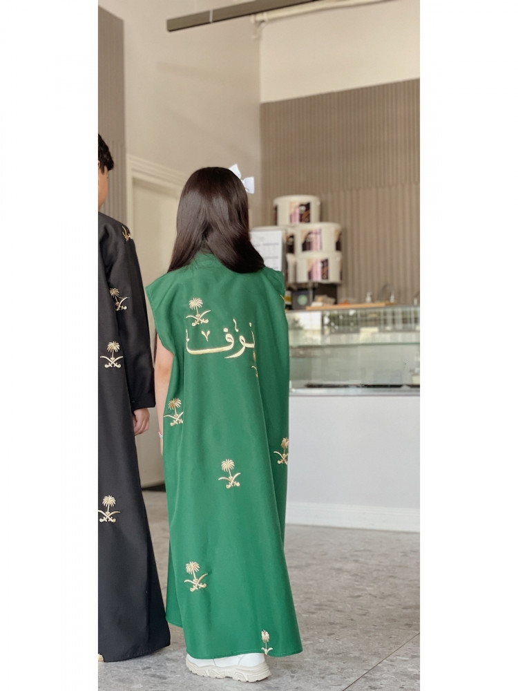 ارتدِ الفخر السعودي مع دقلة اليوم الوطني المصممة بعناية، والمزينة بتطريز أنيق بشعار السيفين والنخلة مثالية للاحتفال بيوم الوطن بإطلالة تحمل معاني الانتماء والأصالة.