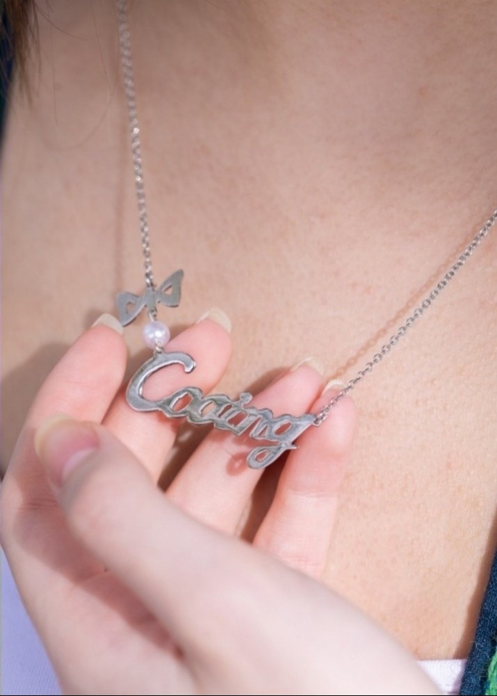 سلسال نسائي بتصميم راقٍ يحمل اسمك مع فراشة جميلة تضيف لمسة أنثوية جذابة.