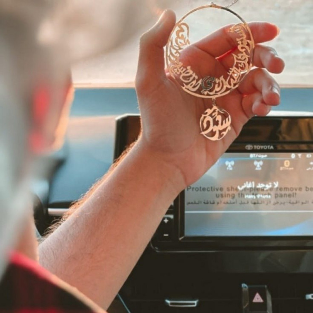 تعليقة سيارة شكل دائري وعبارة استودعك الله الذي لا تضيع ودائعة والاسممعلومات المنتج:يمكنك تخصيص أي اسم أو عبارة (عربي أو إنجليزي).متوفر ذهبي أو فضي.ضمان سنتين على اللون من مياريز.تأتي داخل علبة هدايا بسيطة وكيس.