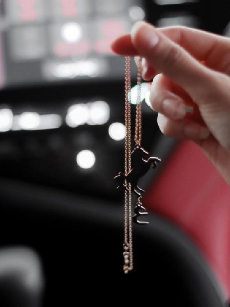 تعليقة سيارة تحمل اسم من تحبون شكل رسمة الخيل والحرف بتصميم أنيق ومميز